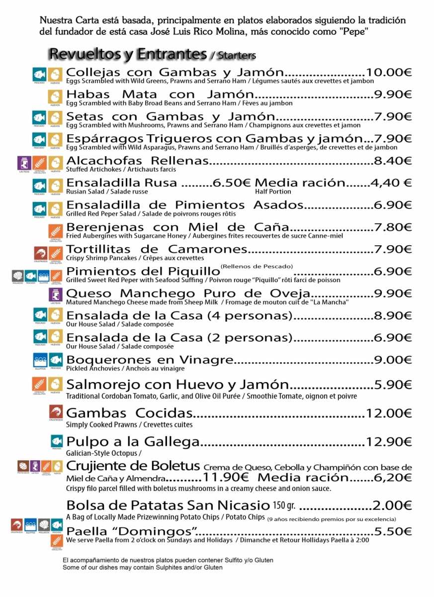 Carta / Productos / Servicios